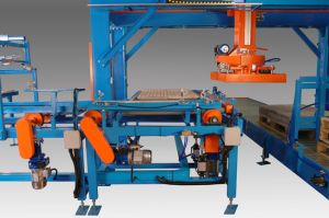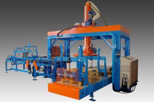 The palletisers in the PP series are automatic machines designed to form packets of tiles, placing them in a horizontal position on wooden pallets of a variety of sizes and piling them in several layers up to an ideal height which can be programmed.